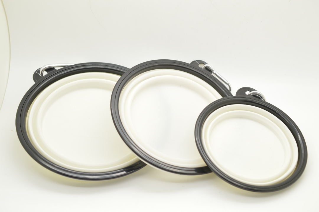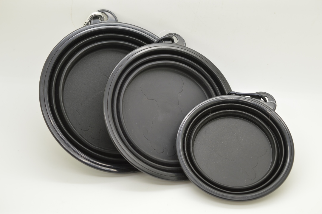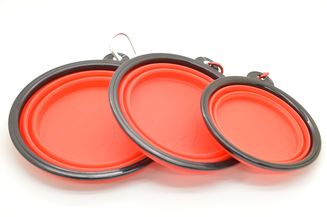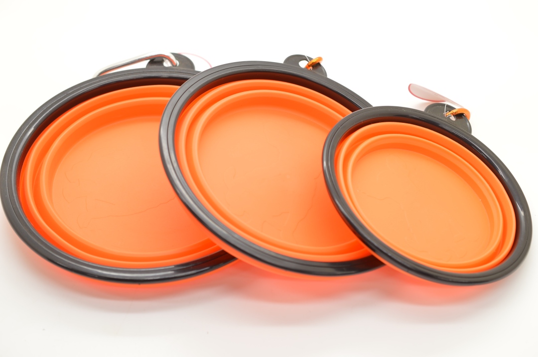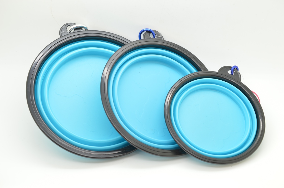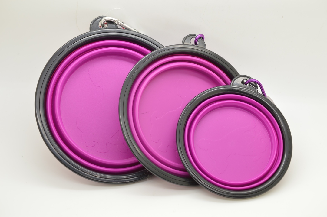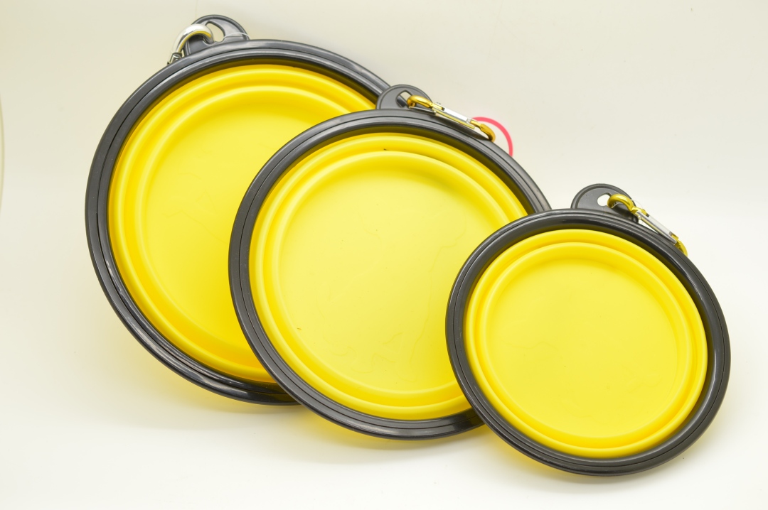 This pop up bowl is made with an expandable rubber bowl for easy traveling. It has a carabiner. Comes in eight colors and three different sizes.